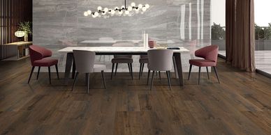 Engineered wood is a versatile and popular flooring and building material that consists of real wood veneer or layers adhered to a core of plywood, high-density fiberboard (HDF), or other composite materials. It combines the beauty of real wood with the practical advantages of stability and ease of installation. It is a popular choice for those seeking the aesthetic appeal of hardwood flooring with added convenience and affordability.